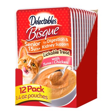 Delectables Lickable Treats formulated especially for senior cats include extra nutrients to meet their changing needs. I take watered down wet cat food or tuna and use the bisque as a topper. Delectables Squeeze Up Hartz Cat Treats Variety 6 Pouch Bundle of 3 Flavors.